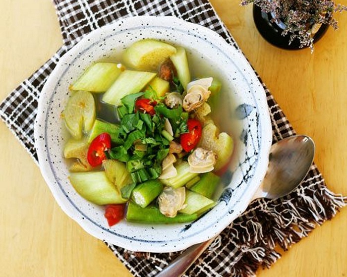 Canh nghêu nấu với cá sấu vừa ngon vừa chua, rất tốt cho việc ăn cơm. Mùa hè ăn rất ngon.