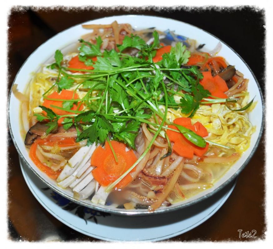 Canh mực khô nấu giòn đã hoàn thành, chỉ cần bày ra và mời gia đình cùng thưởng thức nào! chúc các bạn thành công!