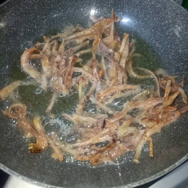 Bước 3: Chiên nhanh khô mực cho giòn, để ráo dầu