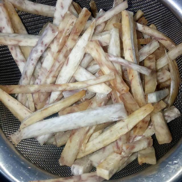 Bước 1: Khoai môn xắt sợi chiên giòn để ráo dầu