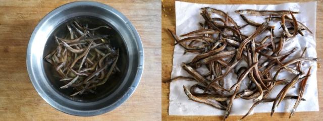Bước 1. Sau khi mua cá khô về đem rửa sạch, ngâm nước khoảng 1 tiếng cho mềm rồi vớt cá ra để ráo. Cho dầu ăn vào chảo đun nóng, thả cá khô vào chiên khoảng 2 – 3 phút trên lửa vừa rồi vớt ra dĩa.