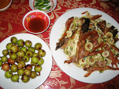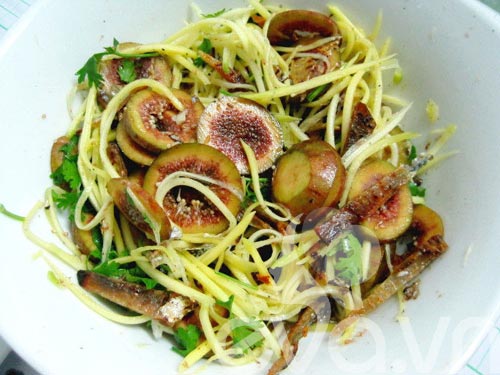 Không quá cầu kỳ và mất thời gian, chỉ cần kết hợp giữa cá chỉ vàng khô, quả sung là đã có một món gỏi sung cá chỉ vàng vừa lạ miệng, lại vừa ngon.