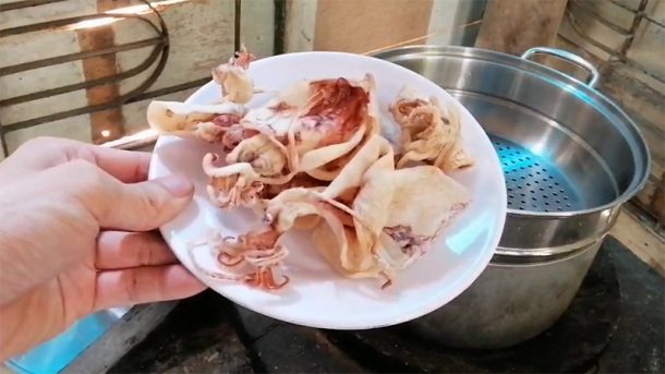 Món khô mực hấp nước dừa nghe lạ nhưng cực ngon